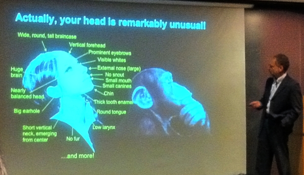 I attended his lecture at Harvard tonight, "Heads Up! How and Why the Amazing Human Head Evolved to Be the Way It Is," which is timed with the release of his new book The Evolution of the Human Head.